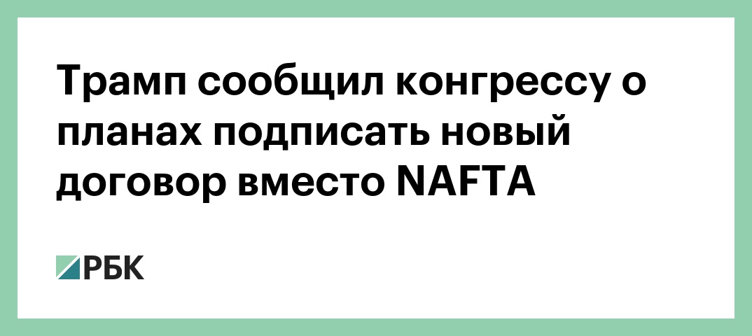 Трамп сообщил конгрессу о планах подписать новый договор вместо NAFTA