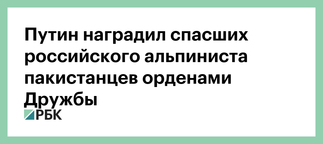 Президент Владимир Путин наградил орденами Дружбы пакистанцев, участвовавших в спасении российского альпиниста Александра Гукова. Указ опубликован на официальном интернет-портале правовой информации.