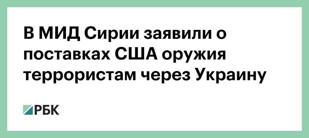 По словам представителя МИД Сирии, для поставок оружия используются восточноевропейские страны, Украина, балканские страны. Дипломат отметил, что США поставляют оружие запрещенным в России террористическим организациям «Джабхат ан-Нусра», «Исламское государство» и другим группировкам.