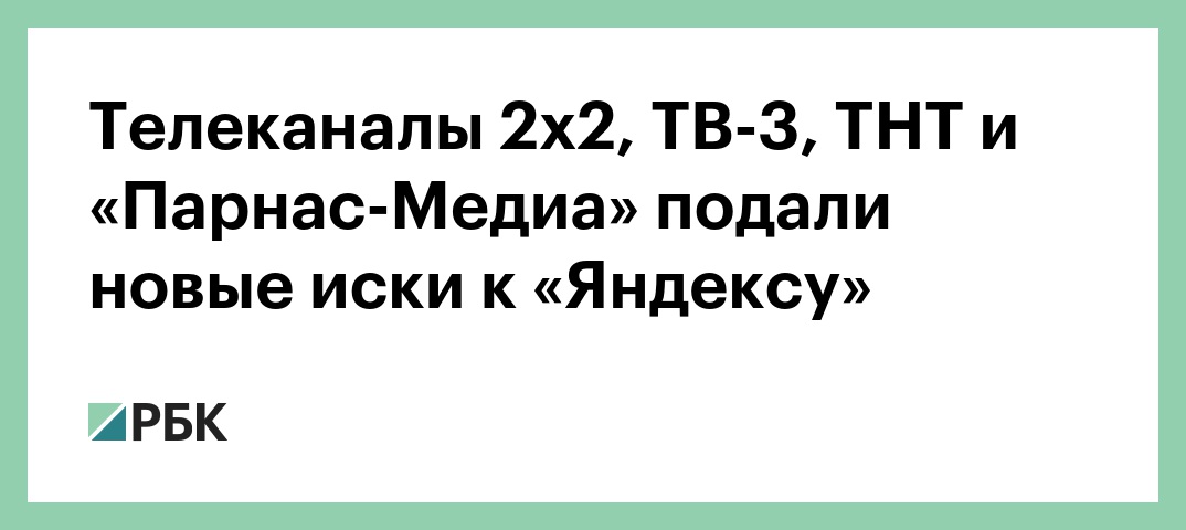 Телеканалы 2х2, ТВ-3, ТНТ и «Парнас-Медиа» подали новые иски к «Яндексу»