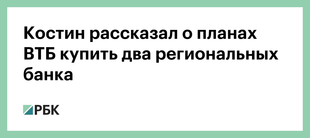 Костин рассказал о планах ВТБ купить два региональных банка