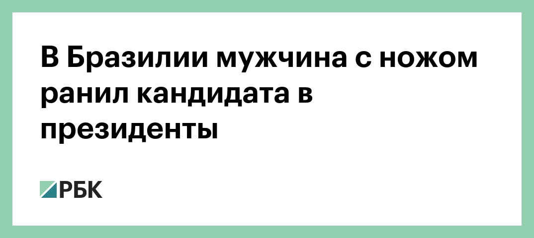 Кандидат в президенты Бразилии и депутат парламента от Социал-либеральной партии Жаир Болсонару получил ножевое ранение во время встречи с избирателями в городе Жуис-ди-Фора в штате Минас-Жерайс на востоке страны. Об этом в Twitter сообщил его сын, сенатор Флавио Болсонару.