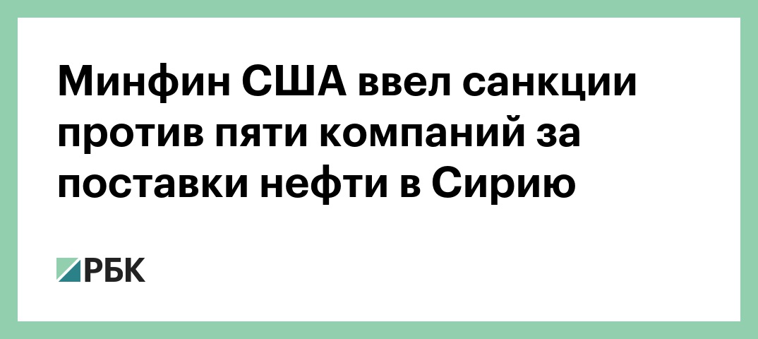 Минфин США ввел санкции против пяти компаний за поставки нефти в Сирию