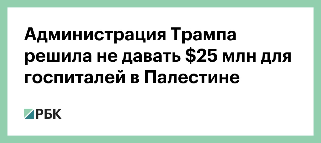 Администрация президента США Дональда Трампа приняла решение перенаправить $25 млн, которые были выделены для помощи восточноиерусалимским госпиталям, оказывающим помощь палестинцам, которую не может оказать их Минздрав. Об этом сообщили в Государственном департаменте, передает Associated Press.