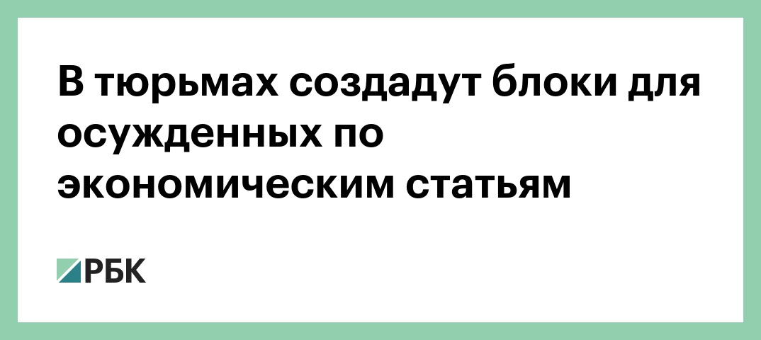 Федеральная служба исполнения наказаний согласилась выделить в тюрьмах отдельные блоки для заключенных по экономическим статьям. Об этом сообщает «РИА Новости» со ссылкой на бизнес-омбудсмена Бориса Титова.