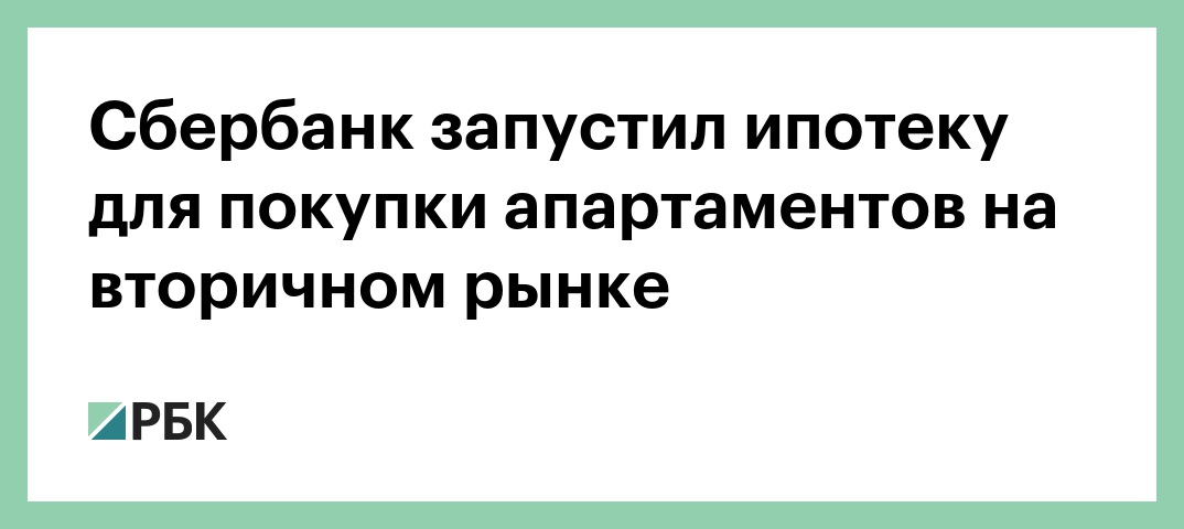 Сбербанк запустил программу ипотечных кредитов для покупки апартаментов на вторичном рынке жилья. Об этом говорится в сообщении банка, поступившем в РБК.