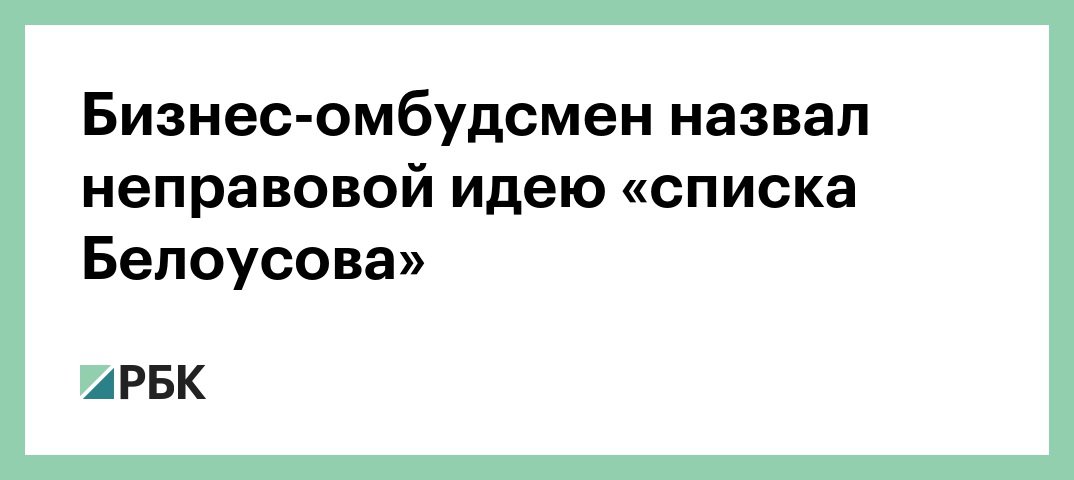 Бизнес-омбудсмен назвал неправовой идею «списка Белоусова»