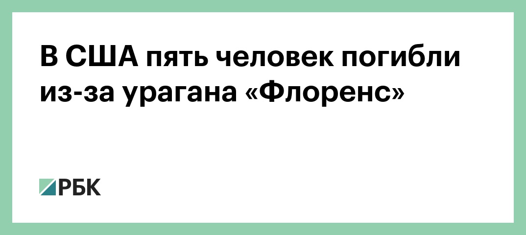 Жертвами урагана «Флоренс», обрушившегося на восточное побережье США, стали пять человек, сообщает Reuters со ссылкой на представителей местных властей.