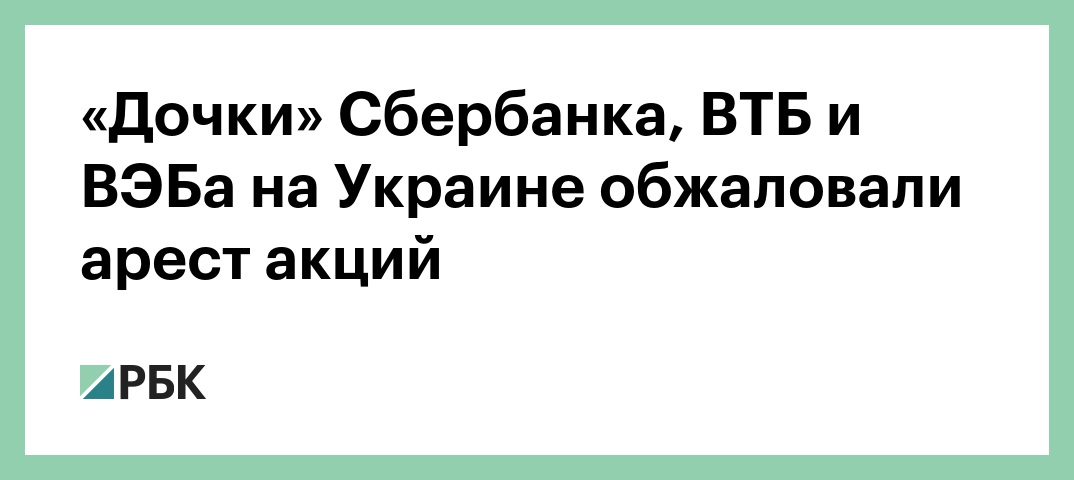 «Дочки» Сбербанка, ВТБ и ВЭБа на Украине обжаловали арест акций