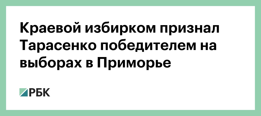 Победителем на выборах губернатора Приморского края стал кандидат от «Единой России» Андрей Тарасенко, заявили в краевой избирательной комиссии. Об этом сообщает «РИА Новости».
