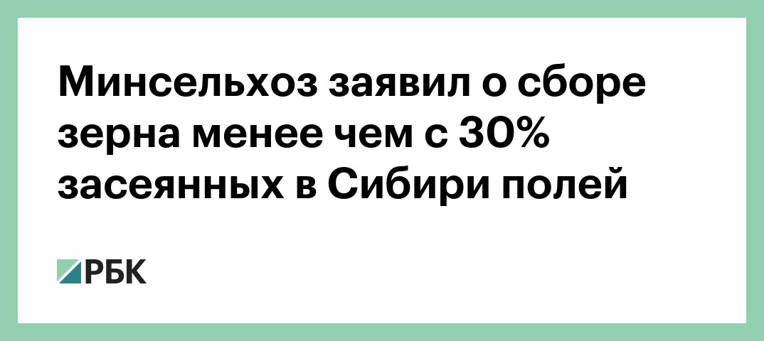 Ситуация с уборкой зерна в Сибирском федеральном округе действительно тяжелая, рассказал в разговоре с РБК директор аналитического центра «Совэкон» Андрей Сизов. По его словам, Сибирский ФО может «прилично недобрать» урожай на фоне позднего сева, задержки в развитии растений из-за аномального холода и снега в мае и поздней уборки.