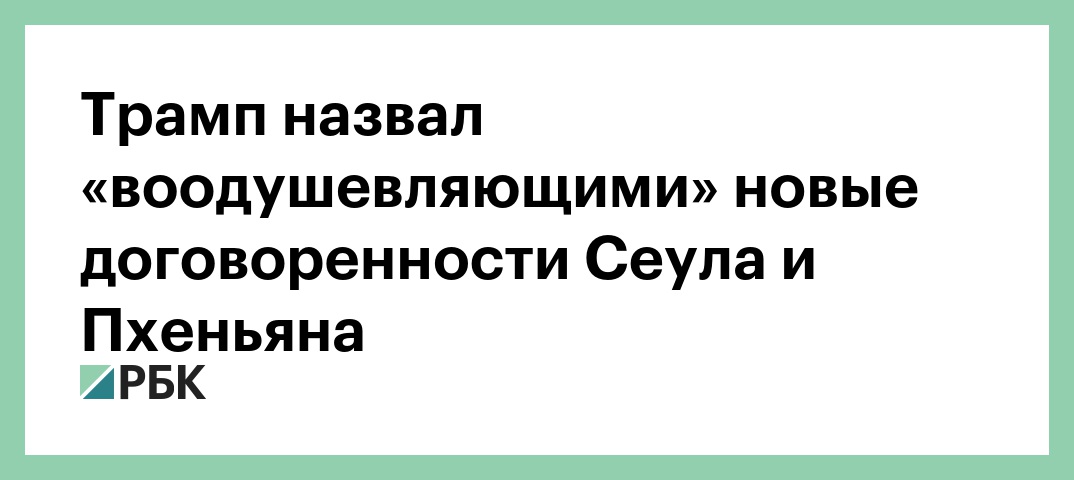 Договоренности, заключенные лидерами двух Корей, «очень воодушевляющие», написал на своей странице в Twitter президент США Дональд Трамп.