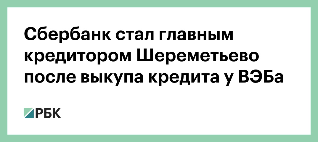 Сбербанк завершил сделку о приобретении у Внешэкономбанка (ВЭБ) кредитов АО «Международный аэропорт Шереметьево» (МАШ) на сумму $537 млн, говорится в поступившем в РБК сообщении Сбербанка.