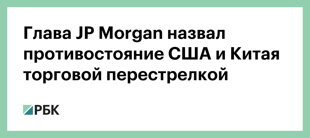 Председатель совета директоров и гендиректор JP Morgan Chase Джеймс Даймон заявил, что введение Китаем новых пошлин в ответ на аналогичные действия США не окажет сильного влияния на американских потребителей, и назвал противостояние между странами «торговой перестрелкой», об этом он рассказал CNBC.