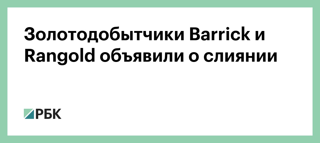 Канадская золотодобывающая компания Barrick Gold объединится со своим британским конкурентом Rangold Resources, общая капитализация компаний после слияния составит $18 млрд. Об этом сообщается в совместном заявлении двух компаний.
