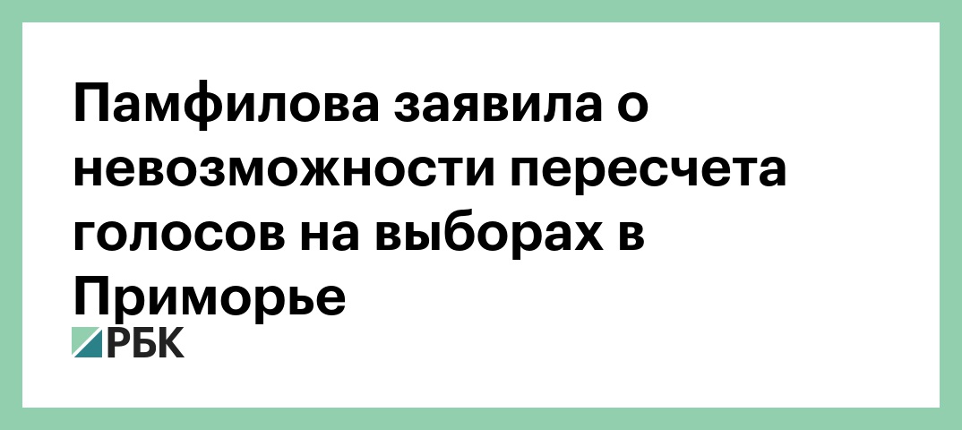 Глава ЦИК Элла Памфилова заявила, что пересчитать голоса на выборах в Приморье было невозможно из-за нарушений, передает корреспондент РБК.