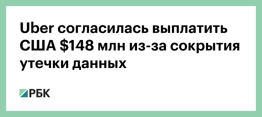 Компания Uber согласилась выплатить $148 млн 50 американским штатам и федеральному округу Колумбия за то, что в течение года скрывала утечку данных водителей и клиентов, сообщается на сайте генпрокурора штата Айова Тома Миллера.