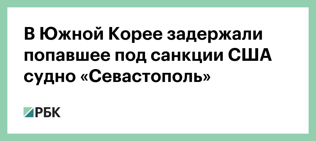 В судоходной компании «Гудзон» сообщили РБК, что судно «Севастополь», на котором находятся 12 граждан России, задержано «по политическим мотивам». «Ремонт [судна] закончился в четверг, и оно должно было выйти завтра. 28 сентября судно задержали по политическим мотивам, следует из письма от администрации порта Пусан со ссылкой на правительство Южной Кореи. Для решения этого вопроса правительство России должно связаться с правительством Южной Кореи. За прошедший месяц под санкциями с нами никто из госорганов так и не вышел на связь, несмотря на то что писем о помощи в адрес правительства направлено с десяток. Нам никак не помогают власти России», — заявили в компании.