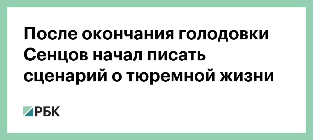Он отметил, что после прекращения голодовки Сенцов получает каши и кисломолочные продукты и таким его питание будет еще двадцать дней. «Он уже начал писать сценарий для будущего фильма. Это будет рассказ о жизни в тюрьме и заключенных. Поэтому вдохновение его не покидает», — заявил замглавы ФСИН.