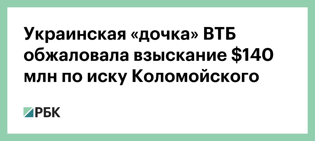 Украинская «дочка» ВТБ обжаловала взыскание $140 млн по иску Коломойского