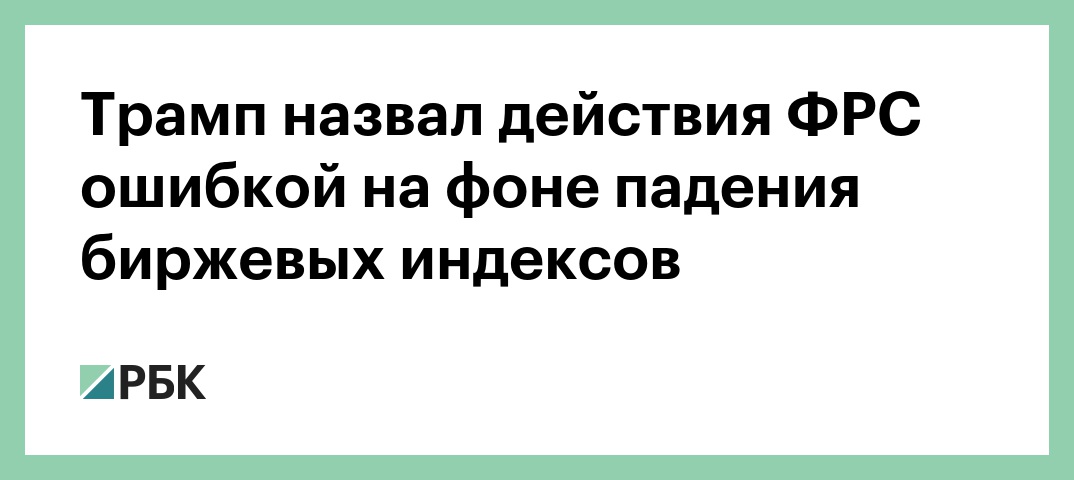 «Я думаю ФРС совершает ошибку. Они такие жесткие. Я думаю ФРС сошла с ума», — сказал Трамп журналистам. Он подчеркнул, что падение биржевых индексов является коррекцией, которая давно ожидалась.