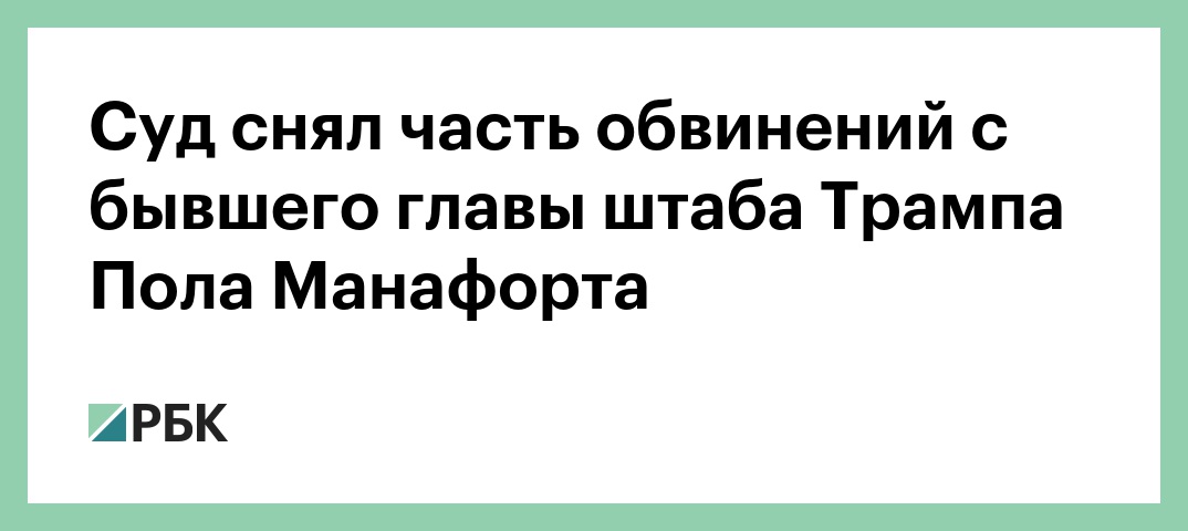 «Я не слышал от властей сообщений о том, сколько может длиться сотрудничество с Манафортом [по российскому делу]. Я не готов ждать бесконечно», — отметил судья. Он добавил, что прокуратура может в будущем заново предъявить снятые обвинения.