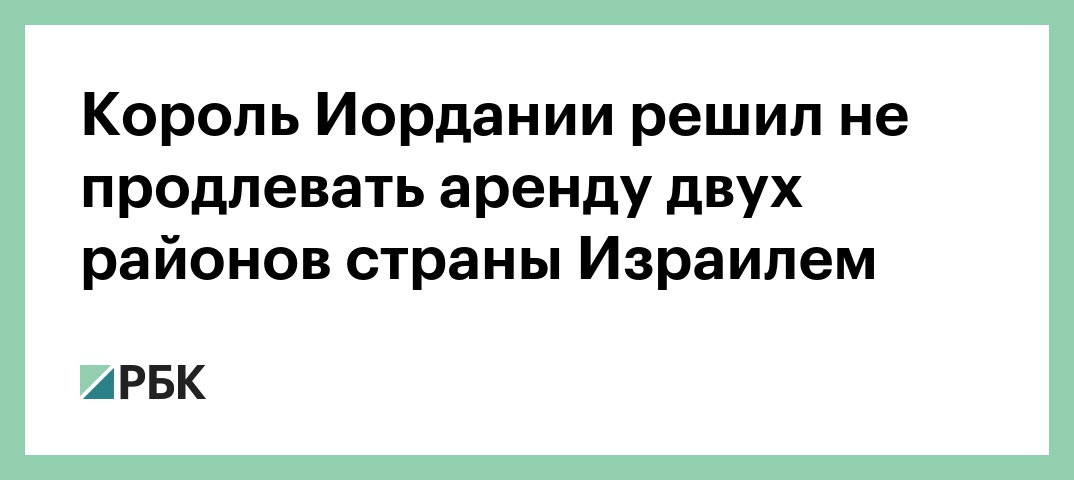«Эль-Бакура и Эль-Гомар — территории Иордании и останутся иорданскими», — сказал король.По словам короля, решение запретить аренду районов Эль-Бакура и Эль-Гомар было принято исходя из интересов Иордании и ее жителей. Абдалла II добавил, что уже уведомил израильскую сторону о своем решении.