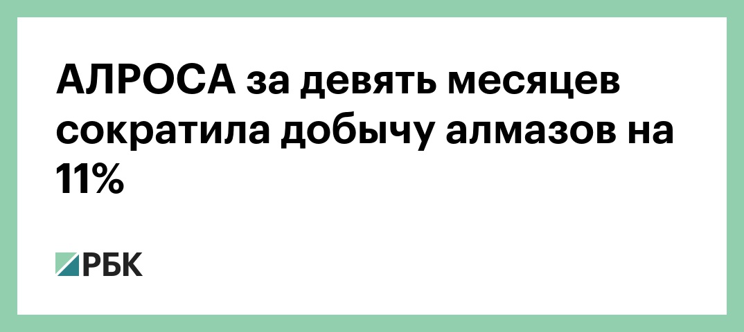 Российская алмазодобывающая компания АЛРОСА за девять месяцев 2018 года сократила добычу алмазов на 11%, до 26,4 млн карат. Об этом говорится в сообщении компании, поступившем в РБК.