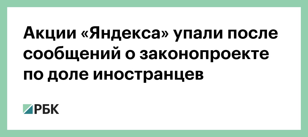 Акции «Яндекса» упали после сообщений о законопроекте по доле иностранцев