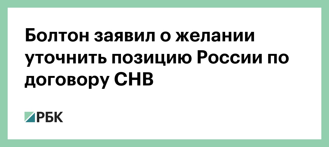 «Понимаете, американское правительство сейчас рассматривает свою позицию по новому договору «Старт» и СНВ. И мы обсуждали этот вопрос с Николаем Патрушевым. У нас были переговоры в Женеве в августе по этому вопросу», — рассказал Болтон.