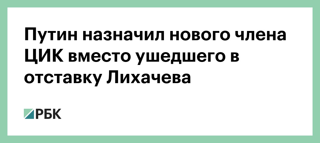 Путин назначил нового члена ЦИК вместо ушедшего в отставку Лихачева
