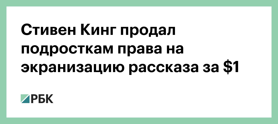 Американский писатель Стивен Кинг продал права на экранизацию своего рассказа «Велотренажер» за $1 подросткам из Уэльса. Об этом сообщает газета The Guardian