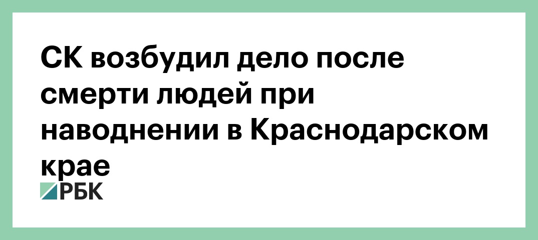 В Краснодарском крае возбуждено уголовное дело по факту гибели двух человек во время наводнения. Об этом сообщили РБК в пресс-службе Следственного комитета.