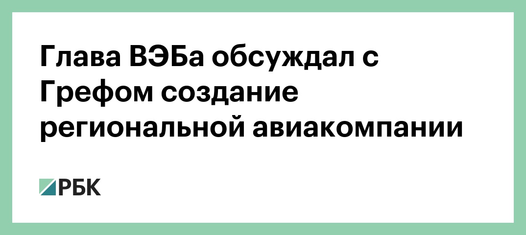 Глава ВЭБа обсуждал с Грефом создание региональной авиакомпании