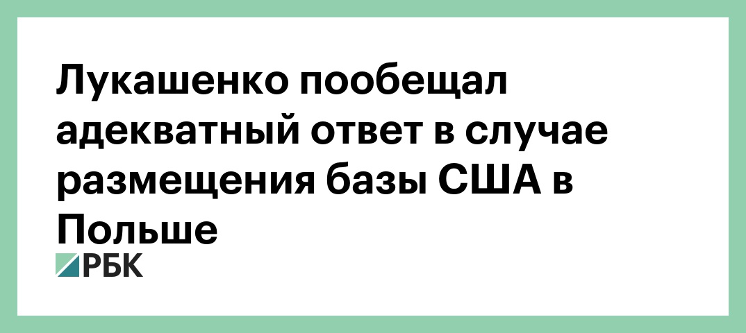Президент Белоруссии добавил, что Москва и Минск думают, как с минимальными затратами найти адекватный ответ. При этом Лукашенко подчеркнул, что Белоруссии и России не хотелось бы вкладывать средства в ответные меры на размещение американской базы.