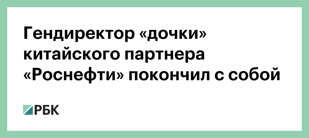 Гендиректор «дочки» китайского партнера «Роснефти» покончил с собой