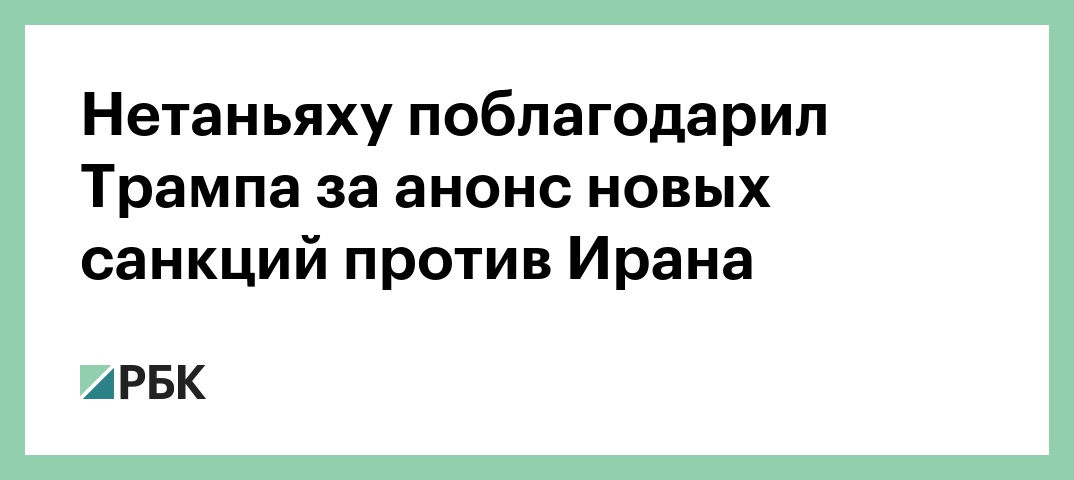 Премьер-министр Израиля Биньямин Нетаньяху поблагодарил президента США Дональда Трампа за введение санкций в отношении Ирана. Об этом глава правительства написал в своем Twitter.