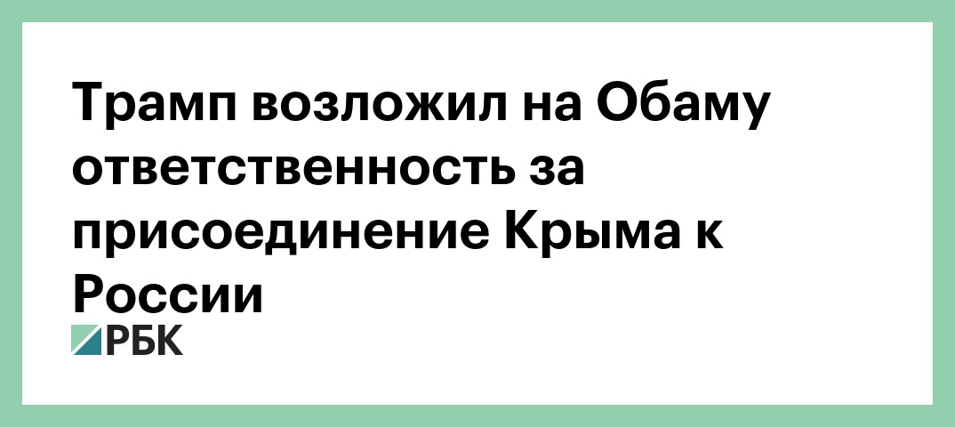 Американский лидер ранее обвинял Обаму в том, что он допустил присоединение Крыма к России. Так, 13 июля Трамп говорил, что если бы он был президентом в 2014 году, то этого бы не произошло. Президент добавил, что случившееся было «катастрофой Обамы».
