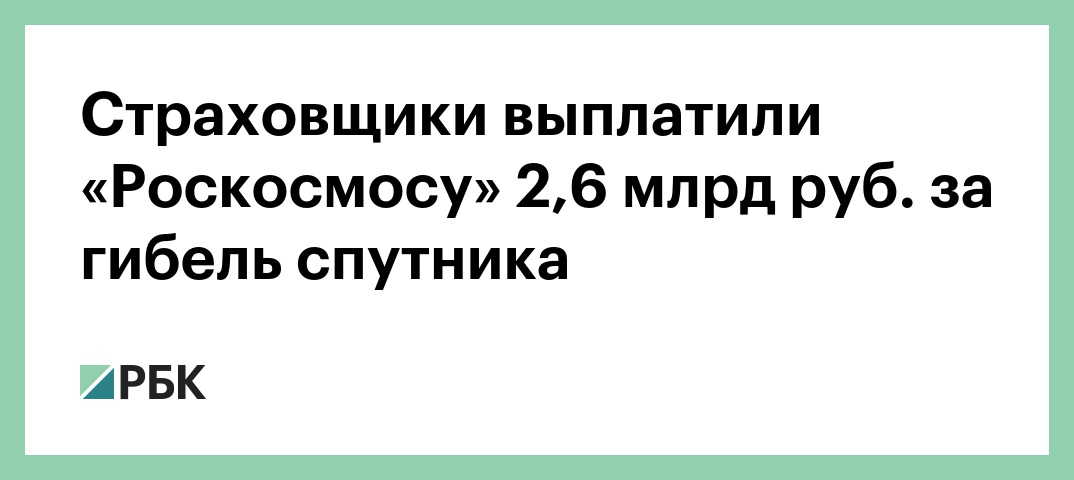 Страховщики выплатили «Роскосмосу» 2,6 млрд руб. за гибель спутника