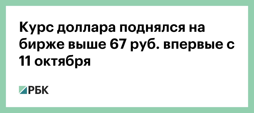 Курс доллара на Московской бирже превысил 67 руб. впервые с 11 октября, следует из данных торгов.