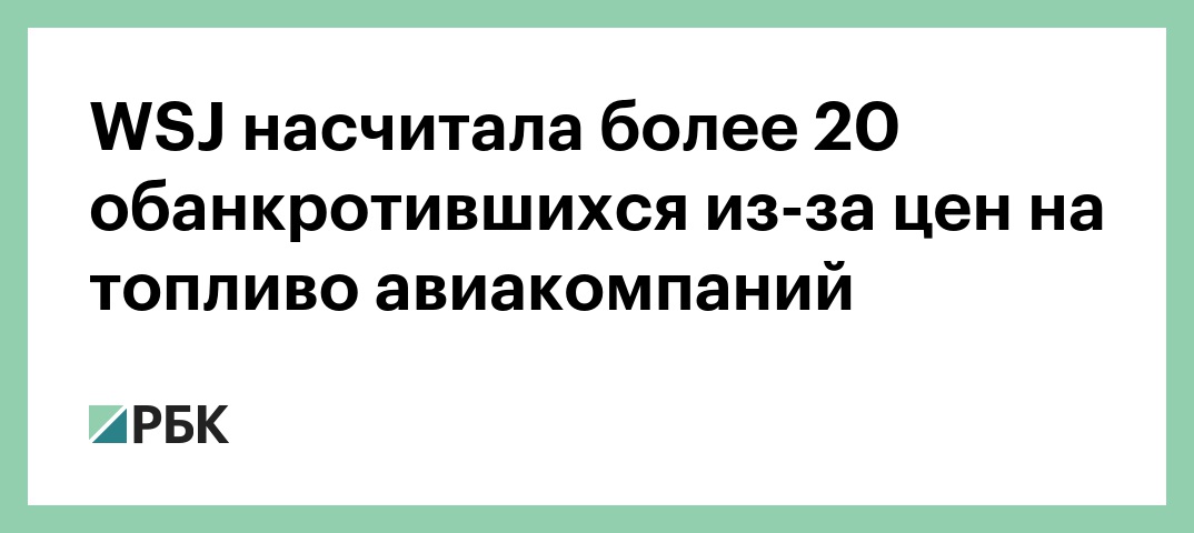 Газета связывает рост банкротств с дорожающей нефтью. NYT приводит два графика: динамика банкротств и динамика цен на нефть Brent с 1995 года по настоящее время. Между ними видна зависимость. «Рост цен на топливо приводит к новому всплеску банкротств перевозчиков, хотя и далеко не такому сильному, как в 2008 году», — пишет WSJ. Во время предыдущего роста топливных цен в 2008 году обанкротились более 60 авиаперевозчиков, отмечает газета.