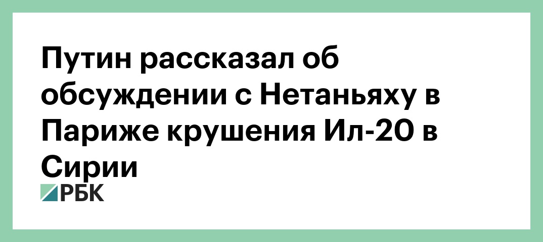 Президент Владимир Путин в ходе пресс-конференции в Сингапуре сообщил, что во время своей недавней встречи с премьер-министром Израиля Биньямином Нетаньяху в Париже обсудил крушение российского военного самолета Ил-20 около сирийской провинции Латакия, которое произошло в сентябре. Об этом сообщает «Интерфакс».