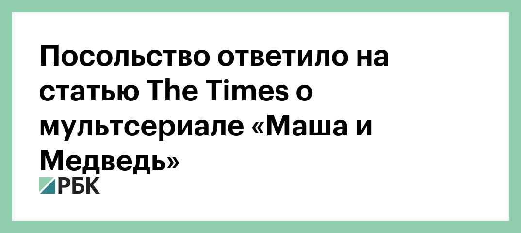 Российское посольство в Великобритании в ответ на статью газеты The Times о пропаганде в мультсериале «Маша и Медведь» призвало найти для защиты от него «очень дорогой подход» и ввести санкции ЕС против всех мультипликаторов. Об этом дипмиссия сообщила в Twitter.