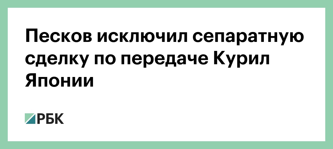«Можно ли говорить о том, что это означает автоматическую передачу каких-то территорий? Абсолютно нет», — сказал Песков. Он указал, что в курильском вопросе необходимо найти компромисс, который не должен противоречить интересам России и Японии.