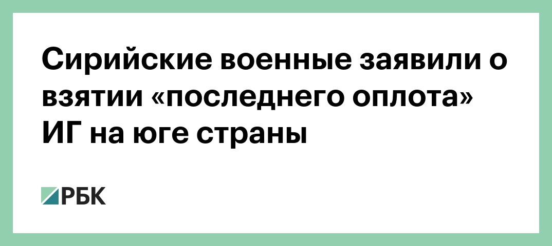 Cирийские военные заявили о взятии «последнего оплота» ИГ на юге страны
