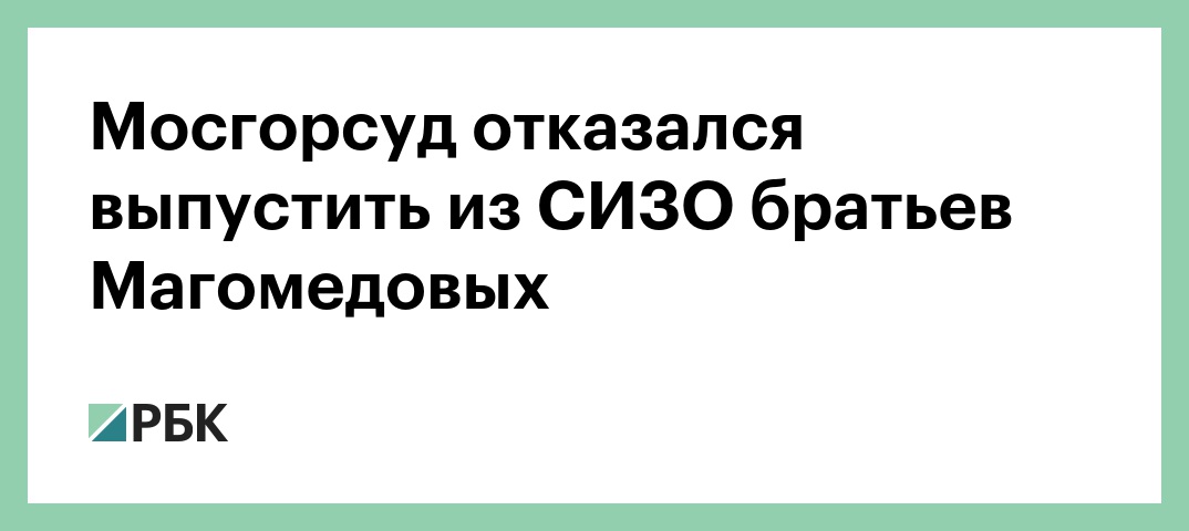 Мосгорсуд не удовлетворил жалобу защиты братьев Зиявудина (владелец группы «Сумма») и Магомеда Магомедовых на продление ареста, сообщила РБК пресс-секретарь Мосгорсуда Ульяна Солопова