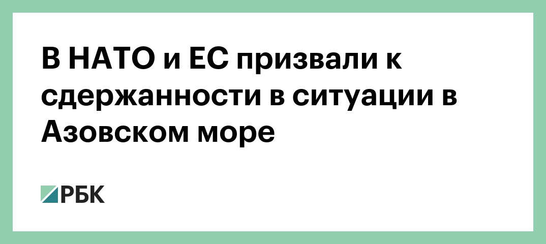 «НАТО внимательно следит за событиями в Азовском море и Керченском проливе, и мы находимся в контакте с украинскими властями. Мы призываем к сдержанности и деэскалации», — написала она, добавив, что альянс призывает Россию обеспечить беспрепятственный доступ к украинским портам в Азовском море.