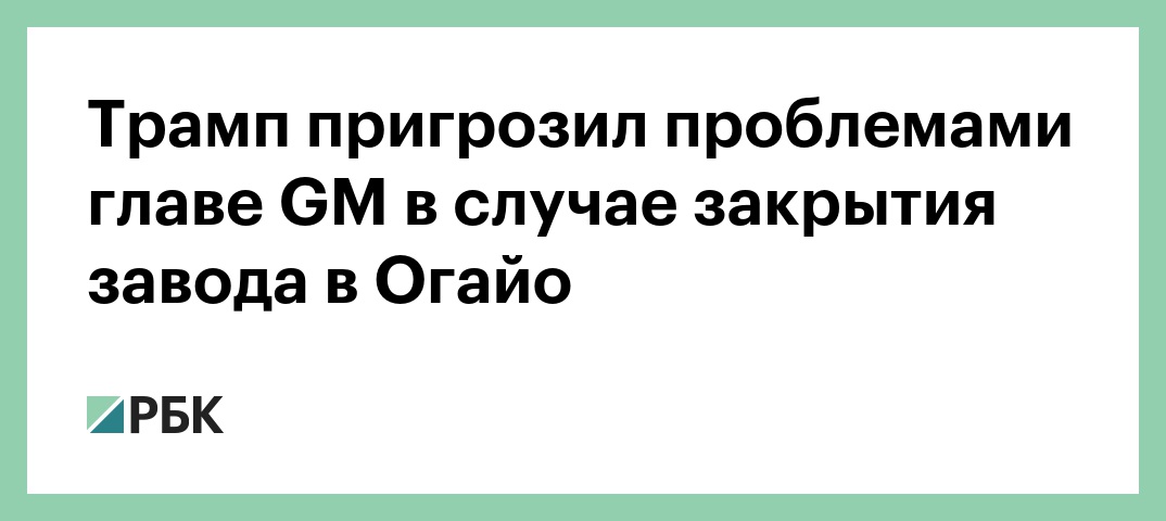 WSJ пишет, что Трамп пригрозил гендиректору General Motors серьезными проблемами, если она в скором времени вновь не запустит завод в Огайо.