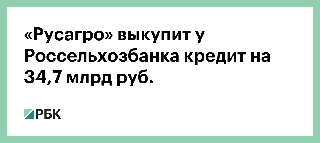 «Русагро» выкупит у Россельхозбанка кредит на 34,7 млрд руб.