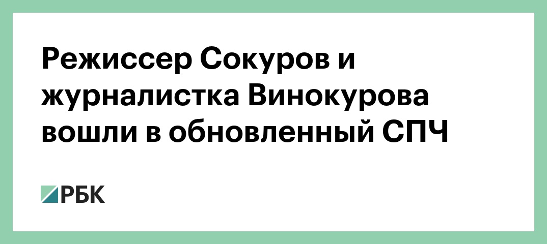 Режиссер Сокуров и журналистка Винокурова вошли в обновленный СПЧ